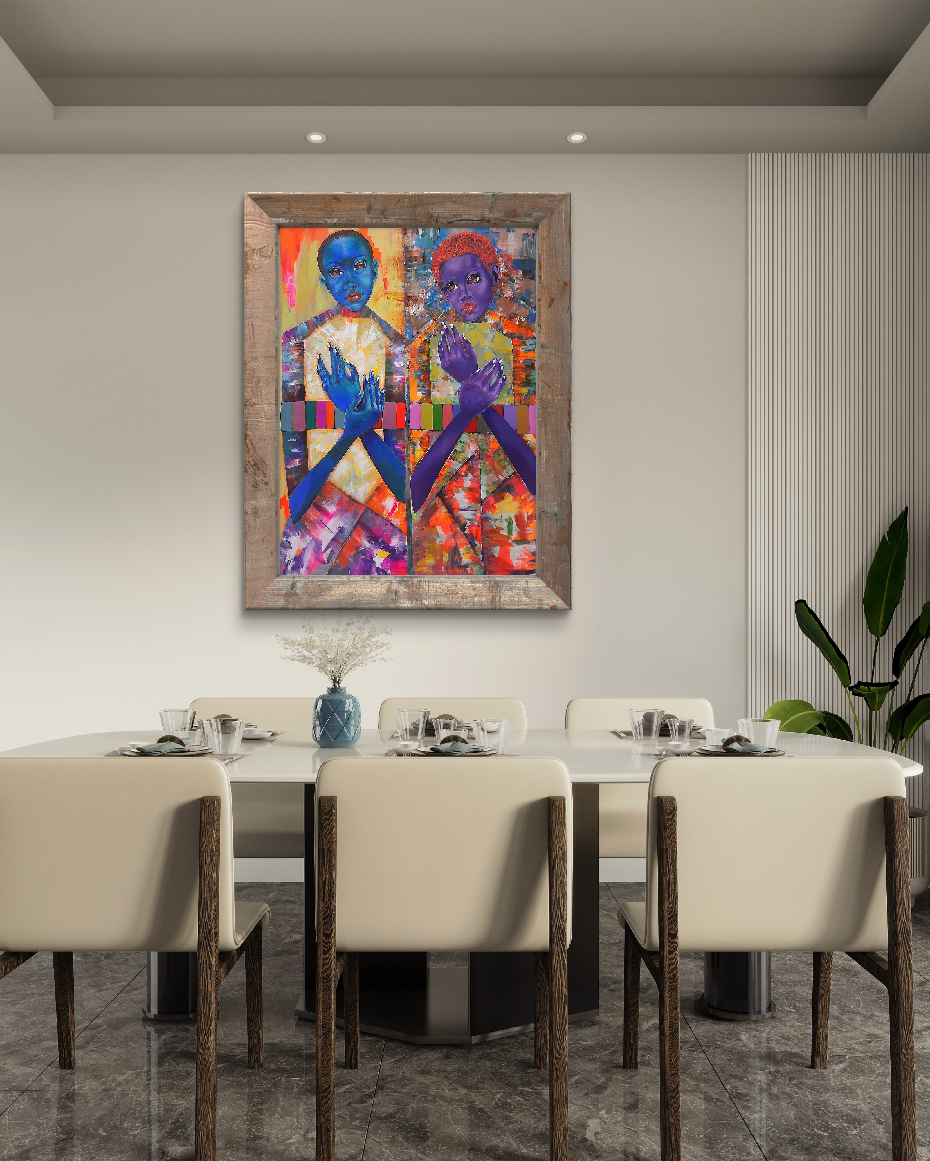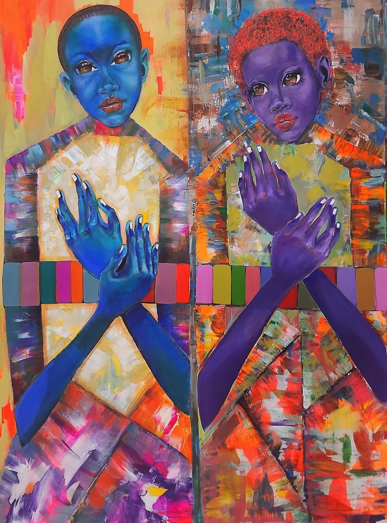 This painting is about women standing together, valuable each interior own right with no need of one to be like the other. This is true self confidence is all about.